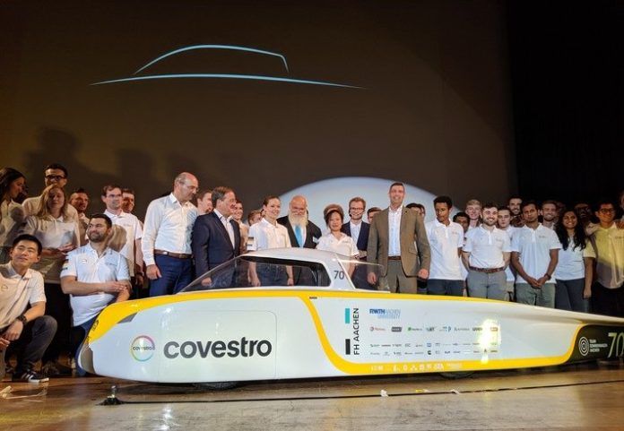 Vorhang auf für ein Elektroauto der besonderen Art: In Aachen hat ein Studententeam das neue Modell eines Rennfahrzeugs vorgestellt, das allein mit Solarenergie fährt. An der feierlichen Enthüllung des “Covestro Sonnenwagens” nahm am Montag auch der nordrhein-westfälische Ministerpräsident Armin Laschet teil. Die 45 Studierenden von RWTH Aachen University und FH Aachen hatten zwei Jahre an der Weiterentwicklung des ultraleichten Flitzers gearbeitet, der im Oktober an der “World Solar Challenge 2019” in Australien teilnehmen soll, dem wohl härtesten Solarrennen der Welt. Mit an Bord sind innovative Werkstoffe der Covestro AG, die auch der Hauptsponsor des Projekts ist.