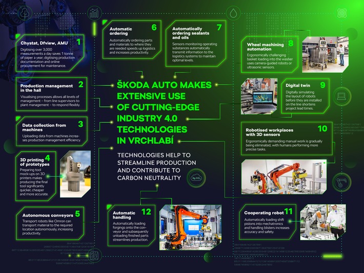 SKODA AUTO setzt am Standort Vrchlabí umfassend auf Technologien aus dem Bereich der Industrie 4.0 und fertigt seit Ende des Jahres 2020 CO2-neutral.