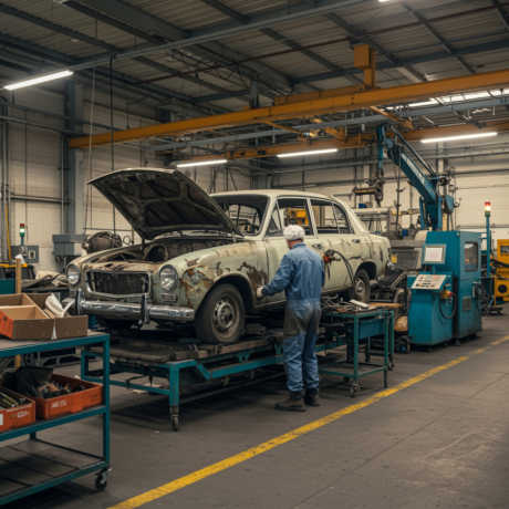 Fachgerechte Autoverschrottung in Salzgitter–Fahrzeug wird umweltgerecht und professionell in Salzgitter verschrottet und recycelt. Darstellung eines modernen Fahrzeugverwertungsbetriebs in Salzgitter mit Fokus auf Nachhaltigkeit